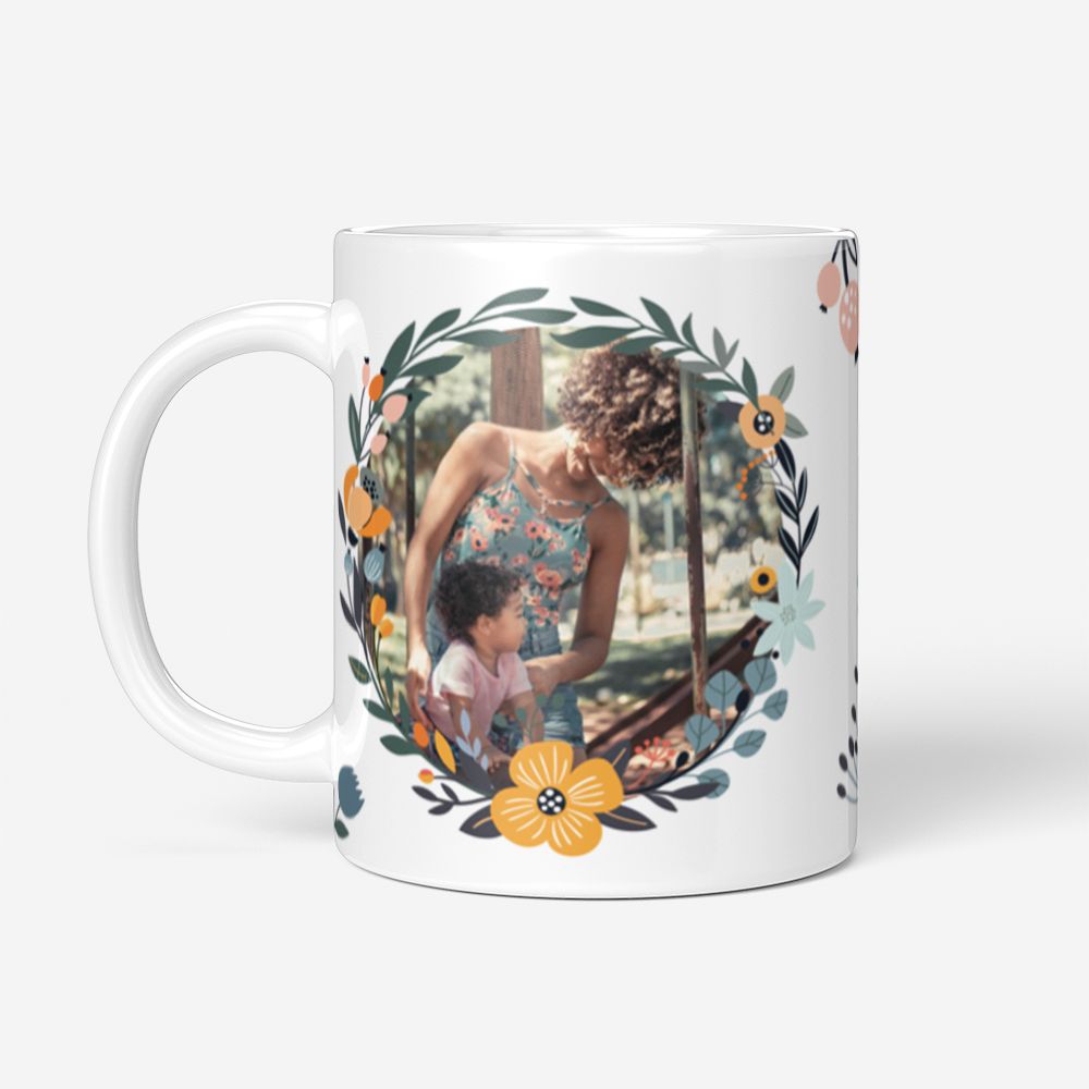 Caneca de cerâmica durável com impressão por sublimação térmica de alta definição. Pode ser usada no micro-ondas e recomenda-se lavagem à mão.
